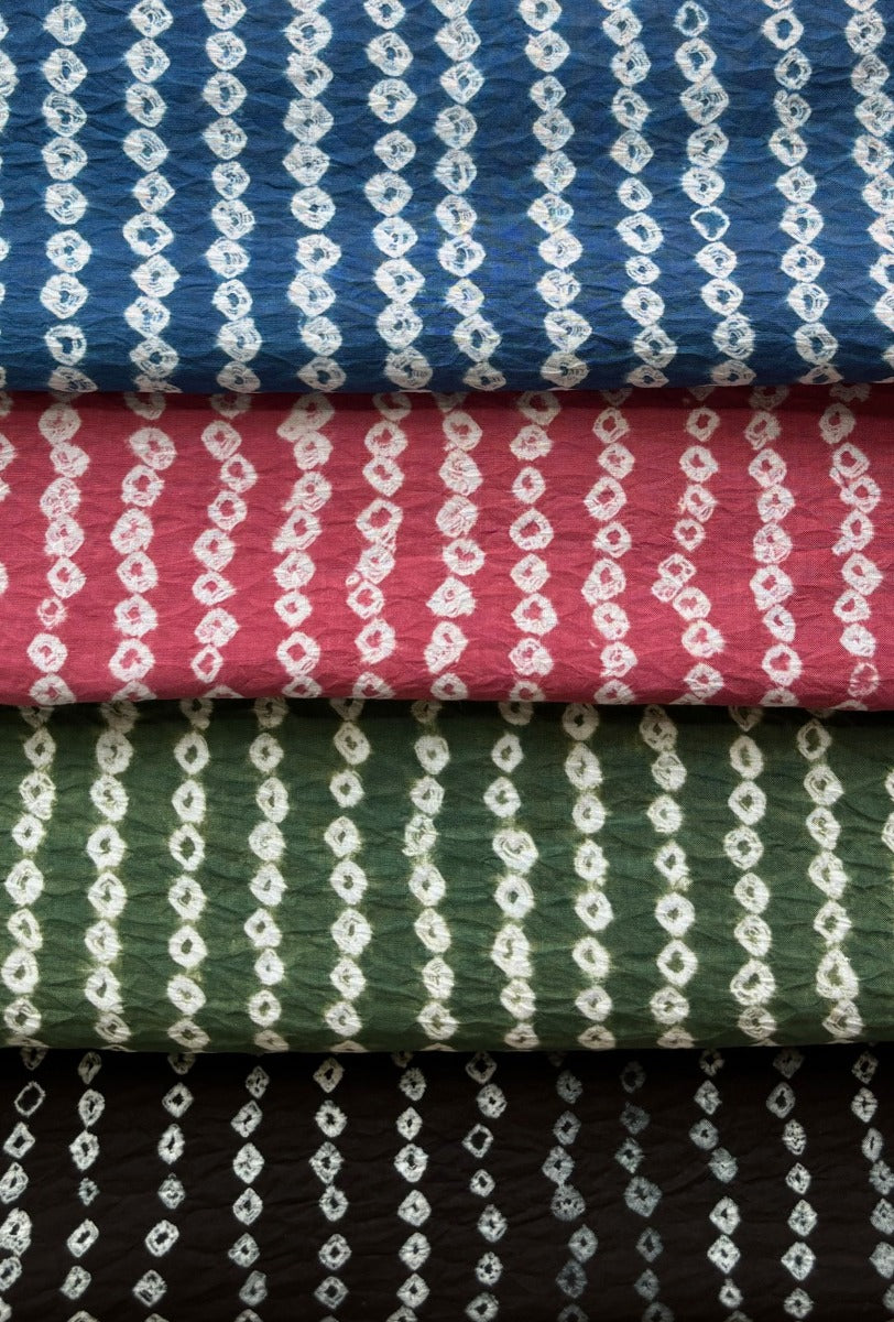 Cotton dress with a round neck, 2 pockets and single dana bandhani pattern on the sleeves and front hem
