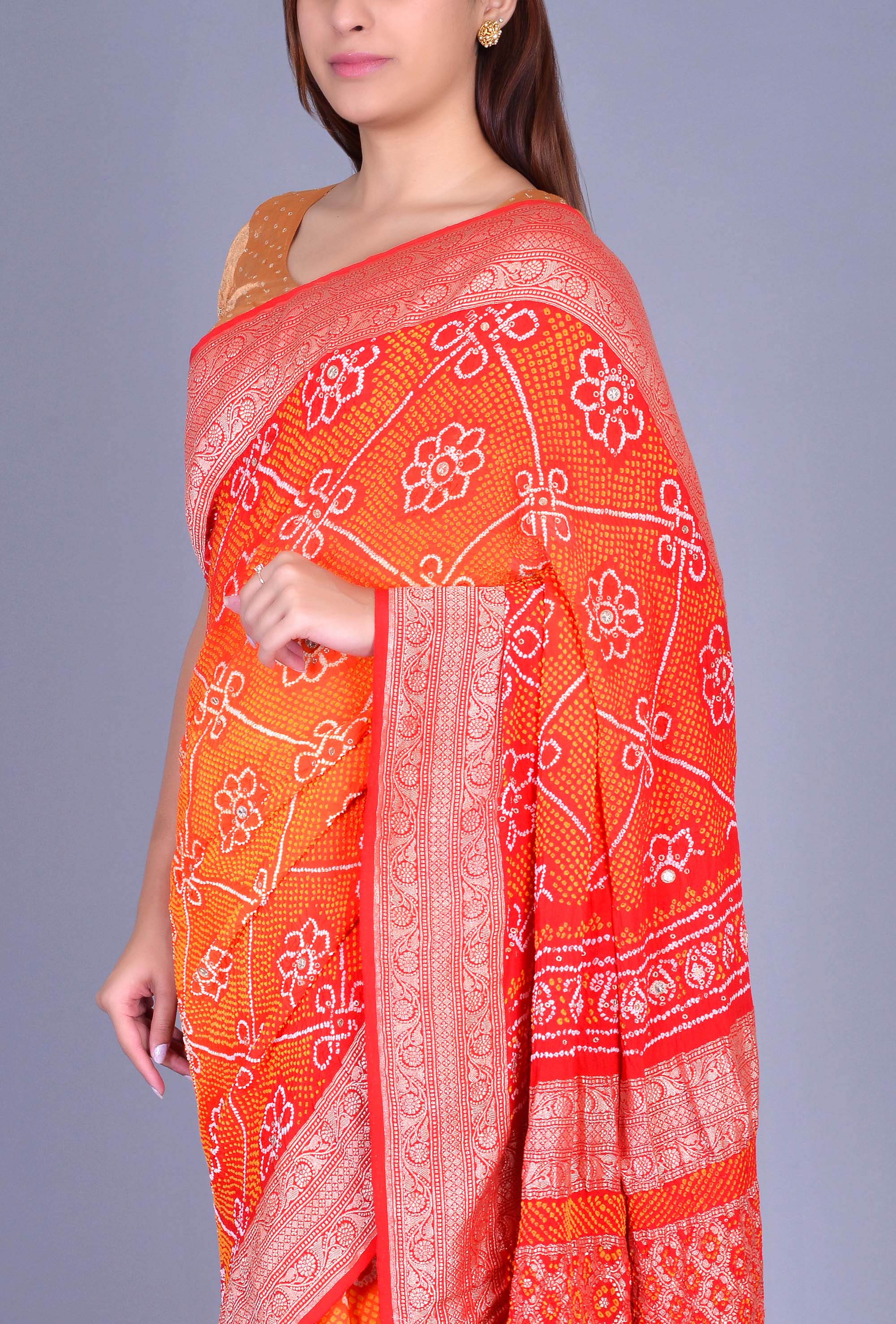 Red Orange Georgette Bandhani Saree
