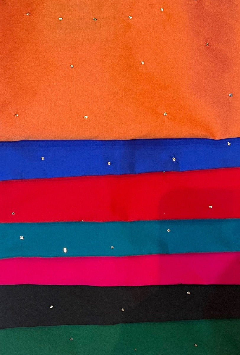 Smart tank tops sprinkled with metallic mookesh dots on the front panel